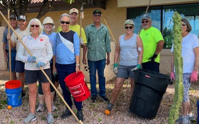 Picking ornamental oranges began during covid when SVE maintenance personnel were short staffed. Pickleball volunteers assisted in this task as well as others that continues to this day.
